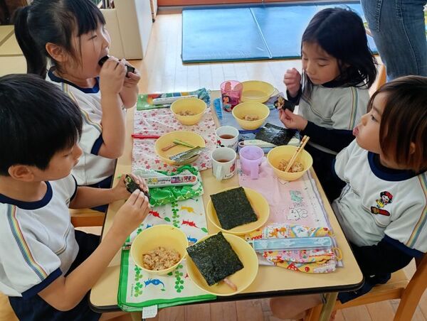 給食には巻き寿司を作って食べる姿はとてもかわいかったです💞