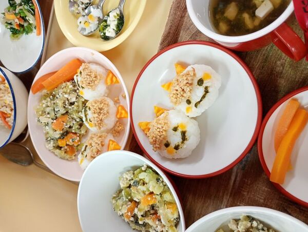 給食室の先生がかわいい節分仕様の離乳食も作ってくれました🥰